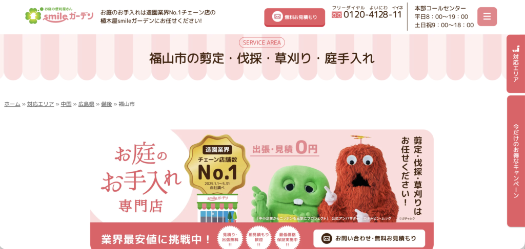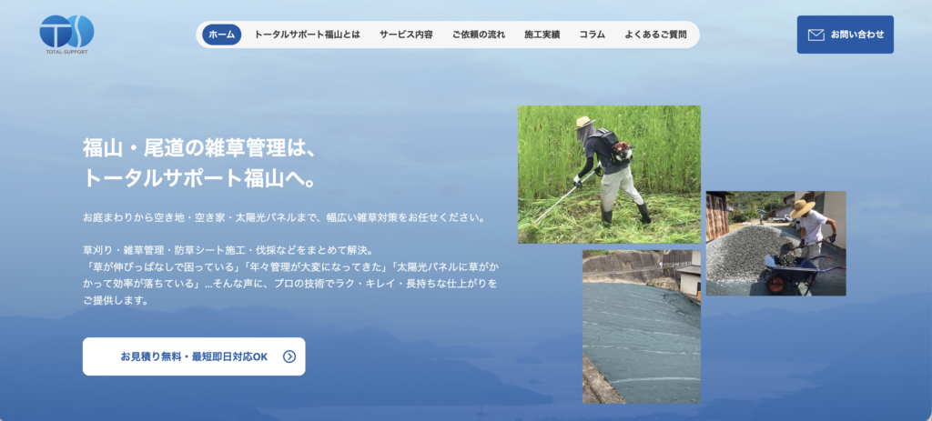 福山市は夏の成長スピードが早いため、年2〜3回の管理が最適。